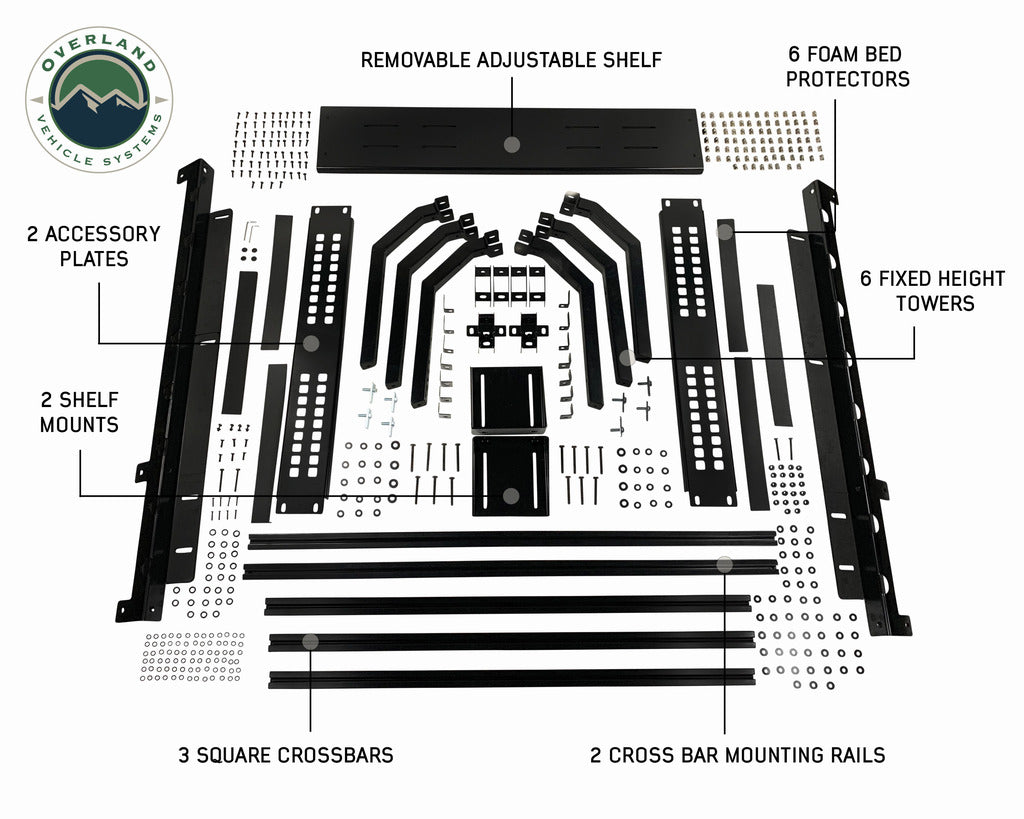 The Overland Vehicle Systems (OVS) Discovery Rack is a rugged, no-drill bed rack built to carry a wide variety of gear on short-bed mid-size trucks. At 22" tall, it lines up with — or slightly above — your cab, giving you extra carrying length for rooftop tents, awnings, watercraft, ladders and other long equipment while keeping installation simple.