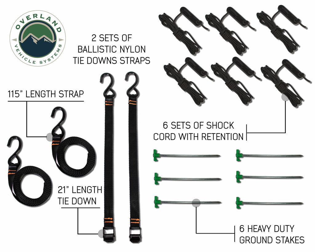 - Multiple tie-down points to channel water off the roof and secure the awning