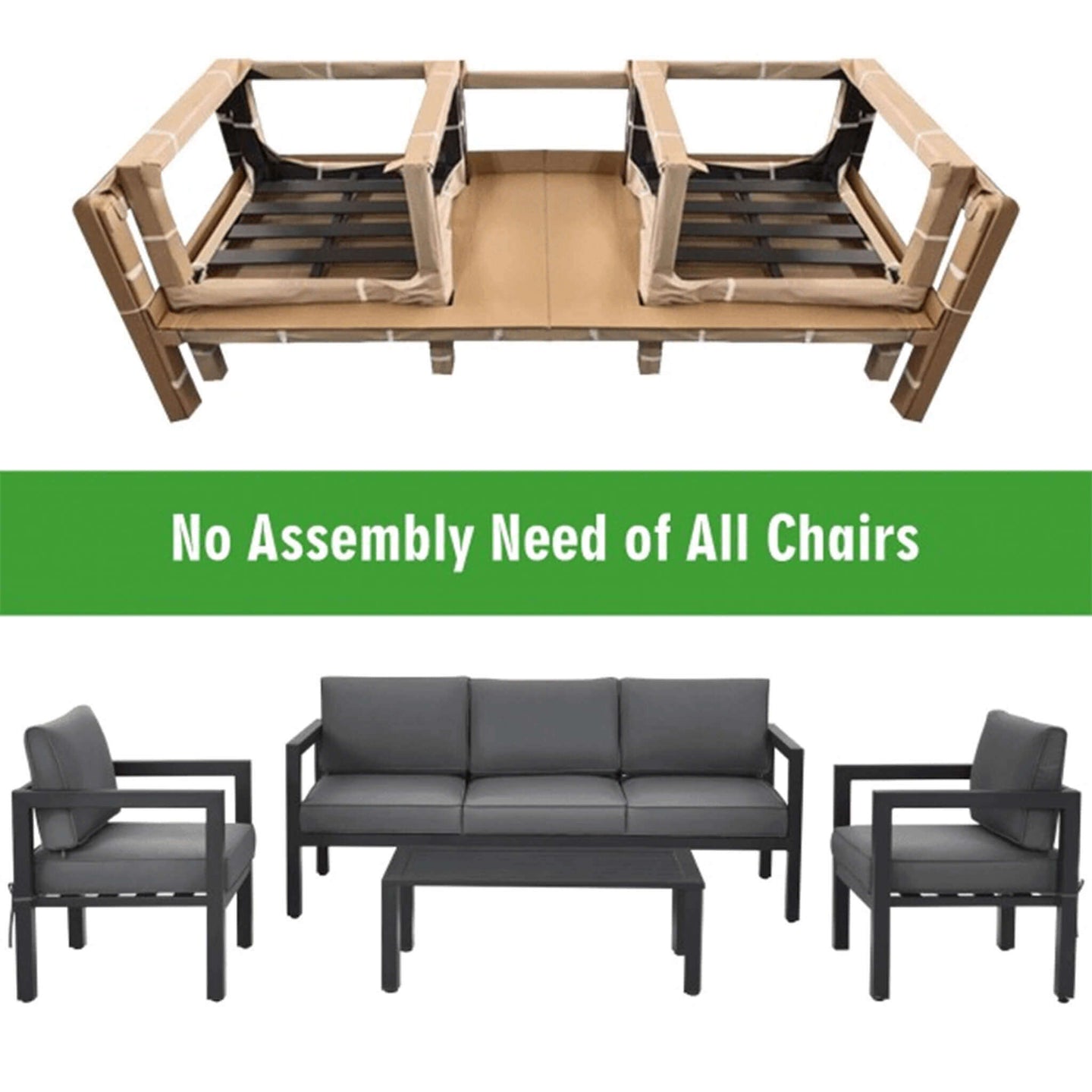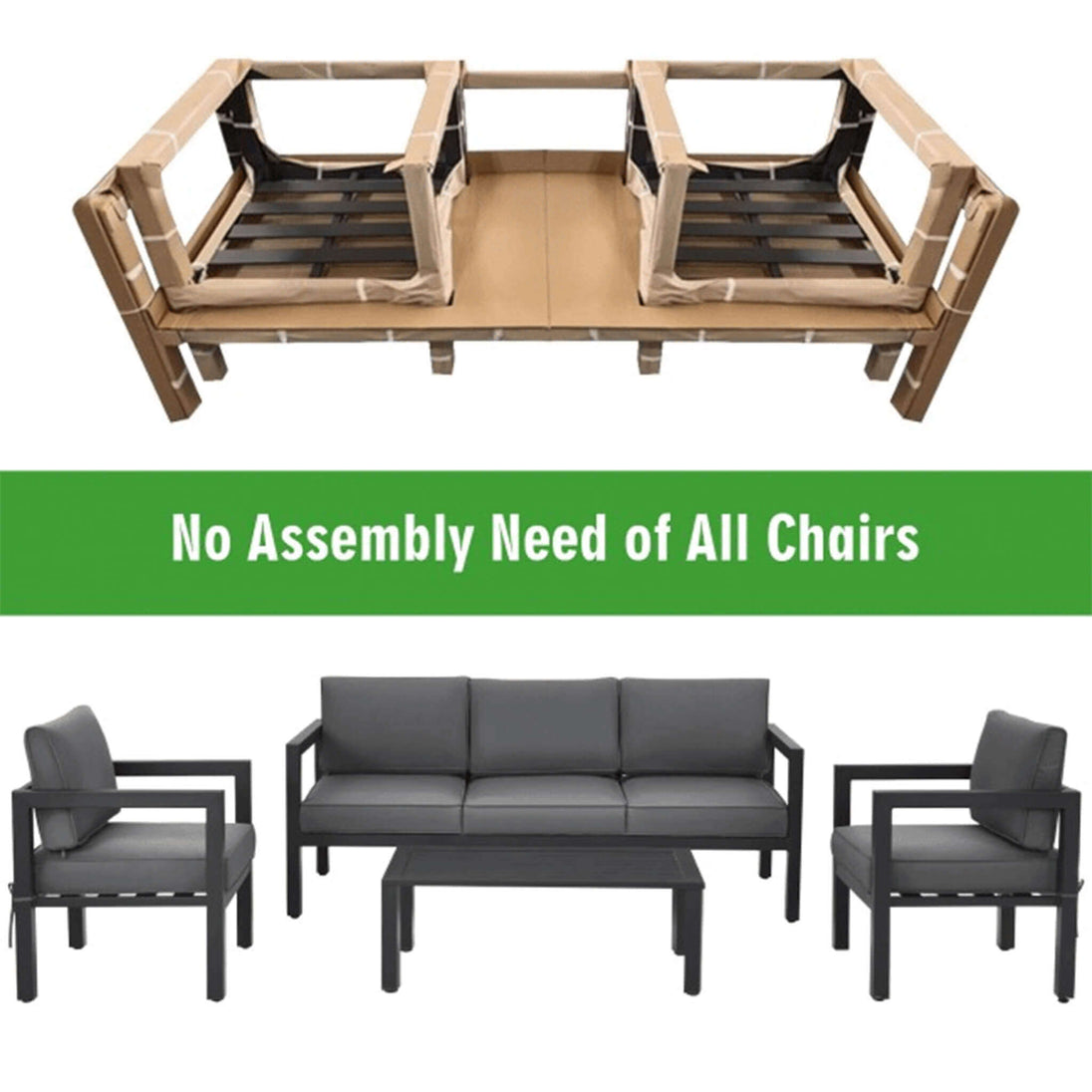 • The steel patio furniture set is super easy to install. Simply put the parts together and then fix them with screws.