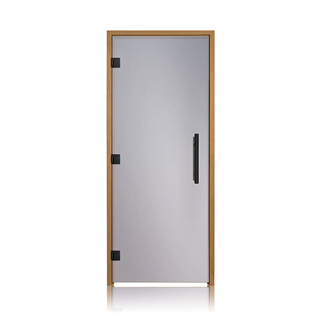 Enhance your home or commercial sauna with the sophisticated elegance of the Prosaunas Thermo-Aspen Prehung Tinted Glass Sauna Door! This isn't just a door; it's a handcrafted statement piece designed to elevate your sauna experience. The frameless, tinted 8mm tempered glass creates a modern, open feel, while the premium thermo-aspen wood jamb provides natural beauty and exceptional durability against the heat and humidity of your sauna environment.