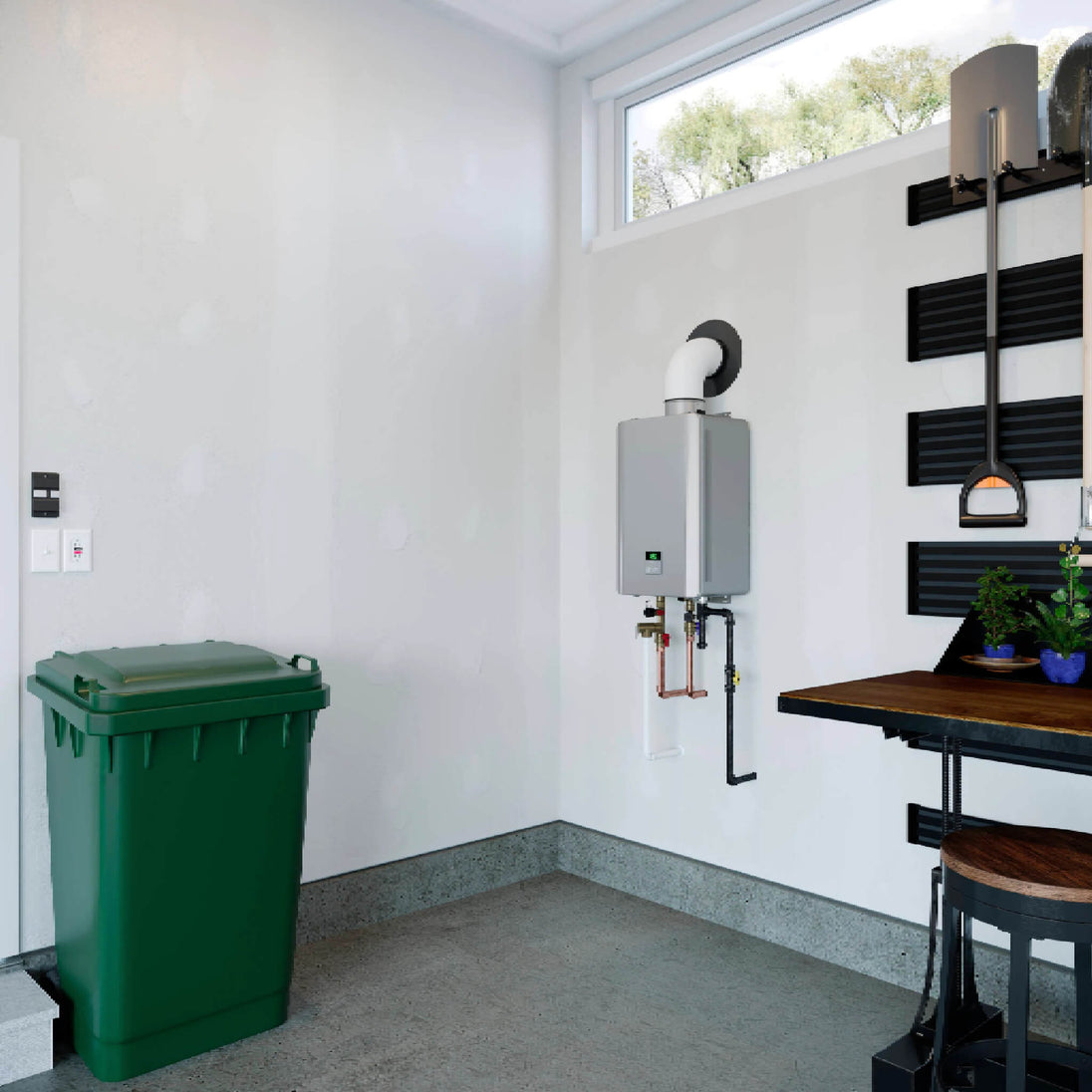 - Installs outside your home with no venting needed, saving you time, space, and installation hassles.