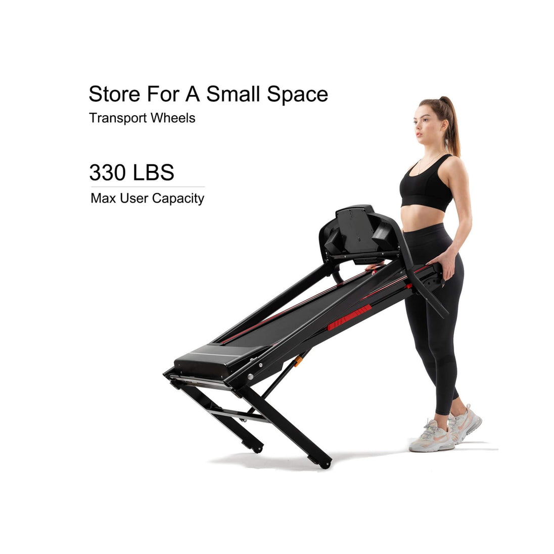 - Built-in transport wheels allow easy mobility, letting you move your treadmill anywhere with minimal effort.
