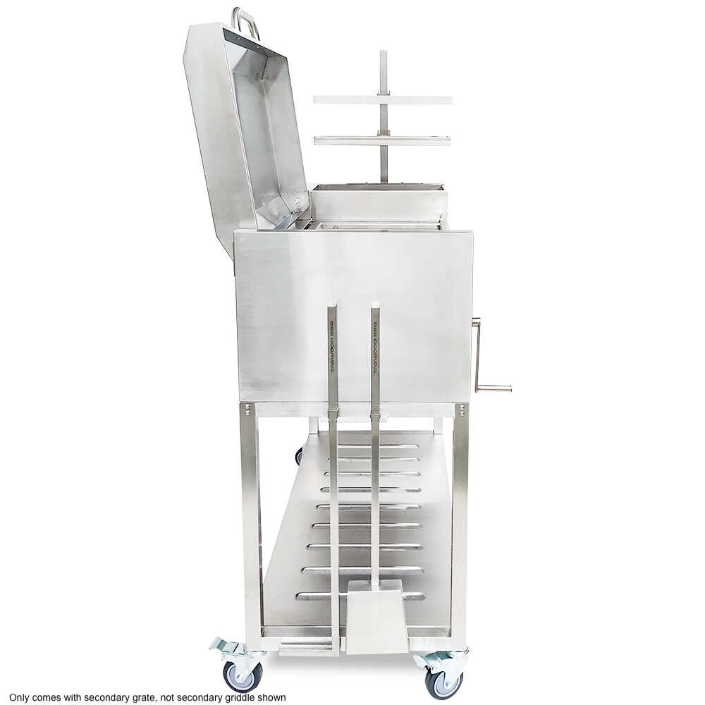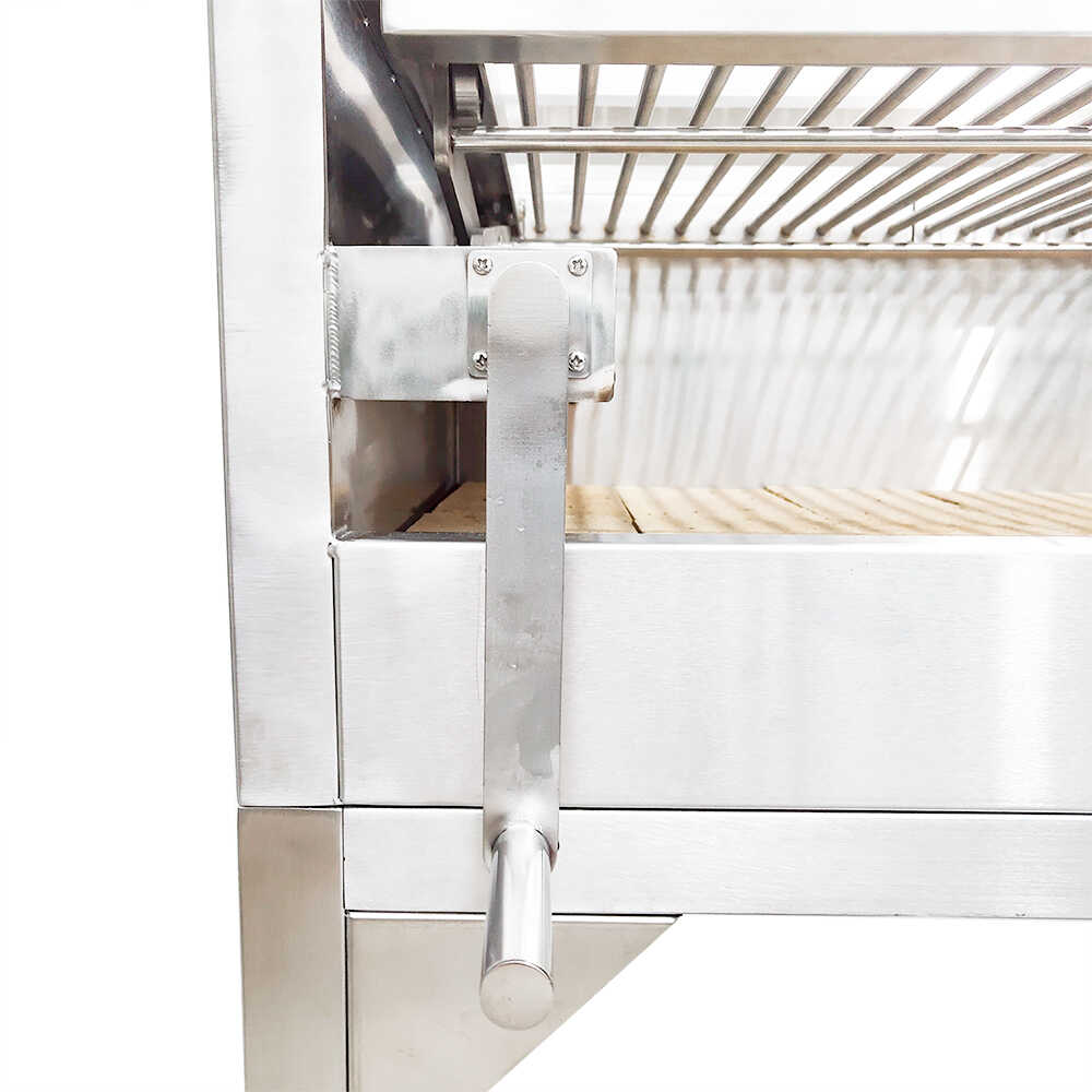 - This grill lets you easily adjust the height of the cooking grates with a wheel, giving you full control over the temperature. Move the grates closer to the coals for high heat searing or raise them for slower, gentler cooking. Perfect for mastering your BBQ just like traditional South American grills.