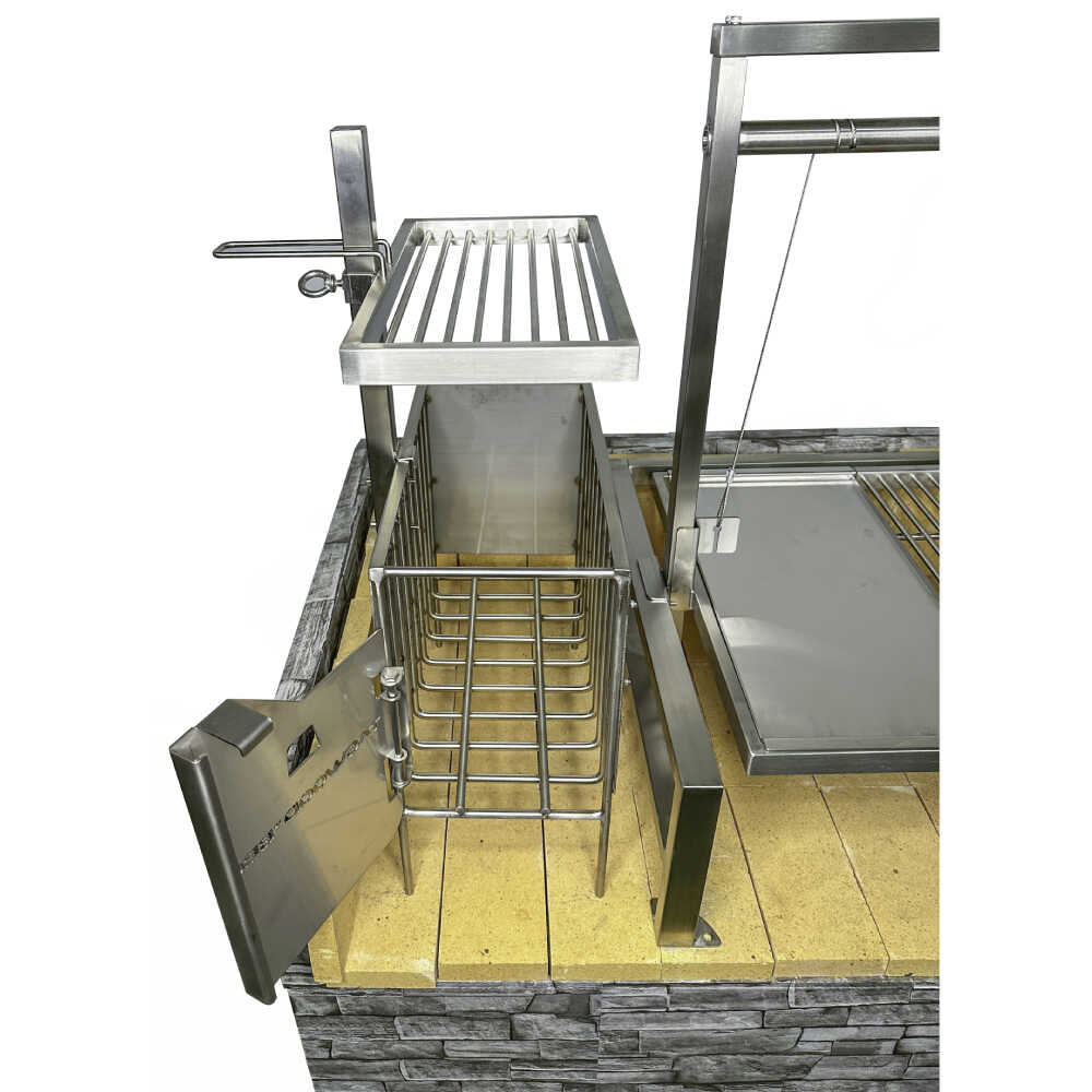 - Light up charcoal or wood quickly and easily with the gaucho-style firebox. Keep the fire away from your food while enjoying the authentic grilling experience.