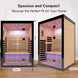 - Enjoy a spa-like experience at home. This sauna helps detoxify, boost circulation, and ease stress, making it a perfect way to relax and improve your well-being.