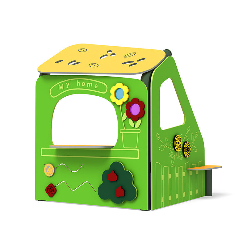 With flower-themed panels, interactive textures, and playful graphics, the Wise Gardener transforms any small outdoor space into a world of discovery. Whether it's pretend-planting flowers or peeking through the large window panel for social fun, this cozy structure is ideal for preschools, daycares, and community centers looking to make the most of compact play areas.