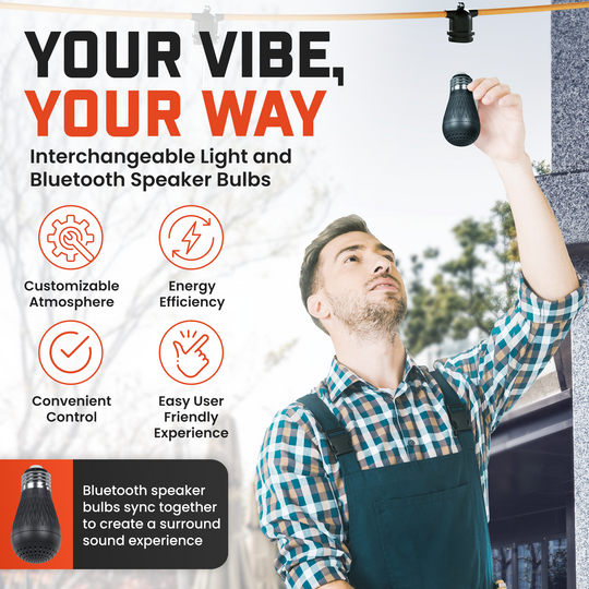 A perfect addition to any campsite, backyard bbq, or any space imaginable. Enjoy the customization of (5) speaker bulbs and (5) LED light bulbs. Durable ABS plastic bulbs are shatter-resistance and weather-resistant so you can enjoy...Sale price $50.00Regular price $99.00Sale price $50.00Regular price $99.00 -