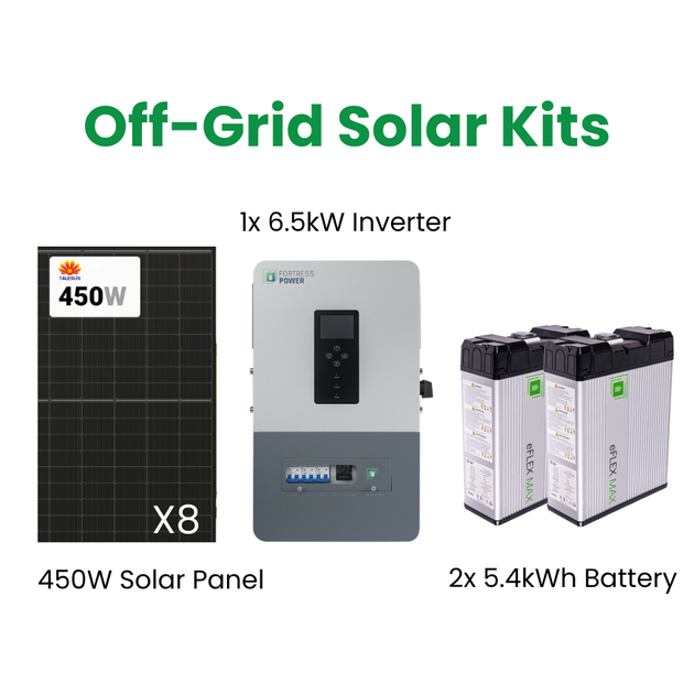 Fortress Power | OffGrid Solar Kit for Cabins 6.5kW Inverter 8x 450W Panels 10.821.6kWh Storage 120/240V Output