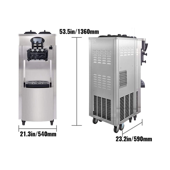 53" Freestanding 3-Flavors Commercial Soft Serve Yogurt Ice Cream Machine Maker With Auto Clean (SAK74031)