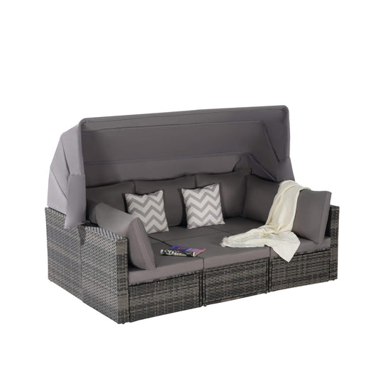Alora 5-Piece Outdoor Patio Wicker Daybed Furniture Set With Retractable Canopy (SAK37816)