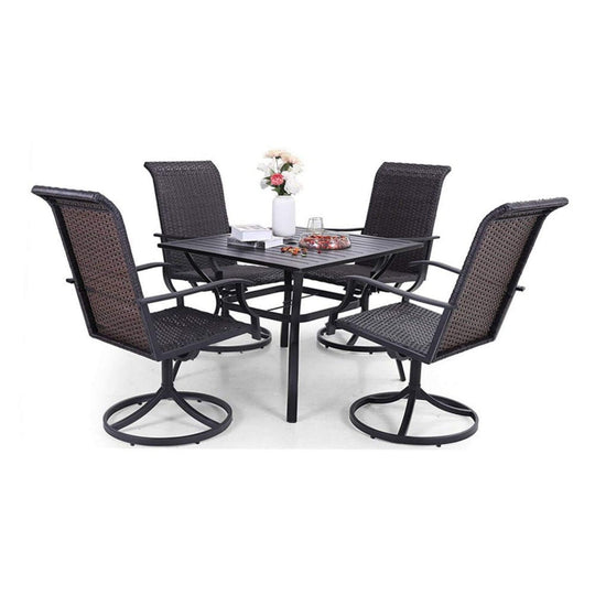 Alora 5-Piece Outdoor Patio Rattan Dining Furniture Set With Swivel Armchairs (91823705)