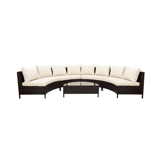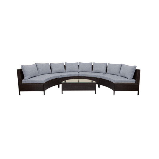 Alora Premium 5-Piece All-Weather Half-Moon Outdoor Rattan Wicker Patio Sectional Sofa Furniture Set With Tempered Glass Table (SAK32615)