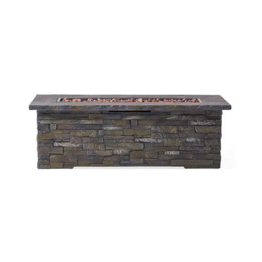 Alora Premium 56" Outdoor Rectangular Concrete Propane Fire Pit W/ Faux Stone Pattern, 50K BTU (SAK31845)