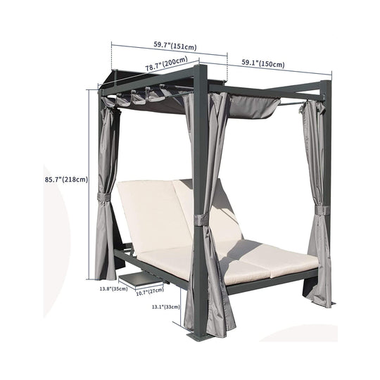Alora Premium Aluminum Outdoor Patio Daybed With Retractable Canopy And Double Chaise Lounge (SAK17682)