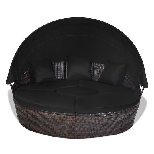 Alora Premium Black Outdoor Patio Rattan Daybed Sofa W/ Adjustable Table Top, Canopy & 3 Pillows, 76'' (92534186)