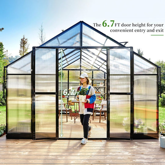 [12X13.5FT] Premium Large Outdoor Double Door Aluminum Polycarbonate Greenhouse With Quick Connect Fitting (96243175)