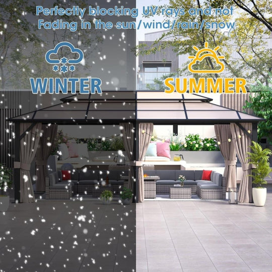 [12X20FT] Alora Premium Aluminum Outdoor Polycarbonate Hardtop Gazebo With UV Protection, Netting & Curtains (96815273)