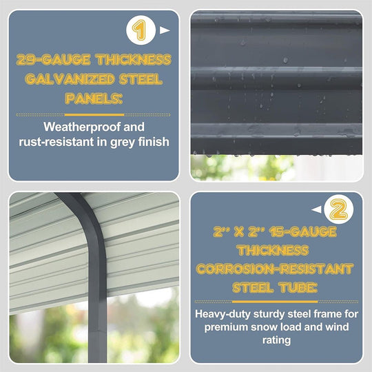 [12X20FT] Alora Premium Heavy-Duty Outdoor Canopy Garage Shelter With Galvanized Metal Roof (SAK91523)
