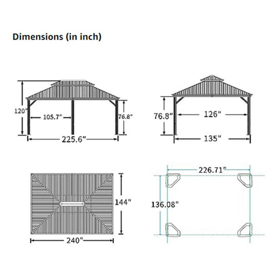 [12x20FT] Premium Outdoor Double-Layer Galvanized Steel Hardtop Gazebo Pergola For Patio (92475381)