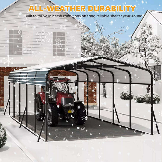 [12X24FT] Alora Large Heavy-Duty Outdoor Metal Carport Kit With Galvanized Steel Roof (SAK53849)
