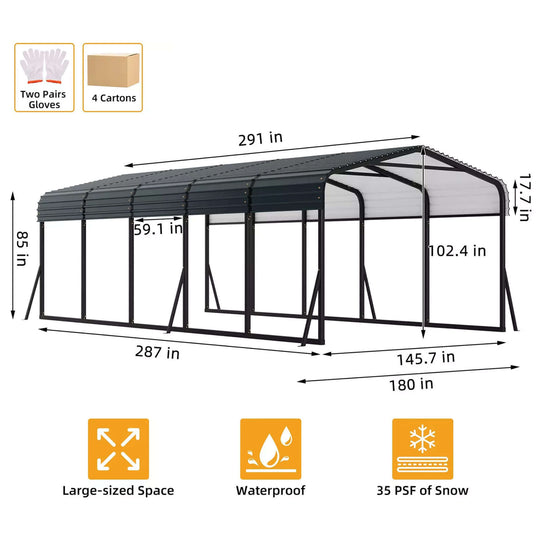 [12X25FT] Alora Heavy Duty Extra Large Multi Vehicle Carport Kit With Galvanized Steel Roof (SAK37514)