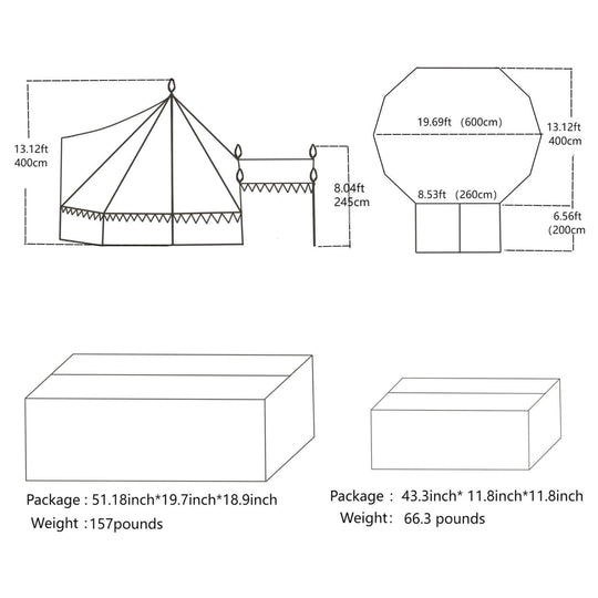 [13X19FT] Extra Large Heavy-Duty Outdoor Four Seasons Glamping Canvas Bell Yurt Tent (SAK45688)