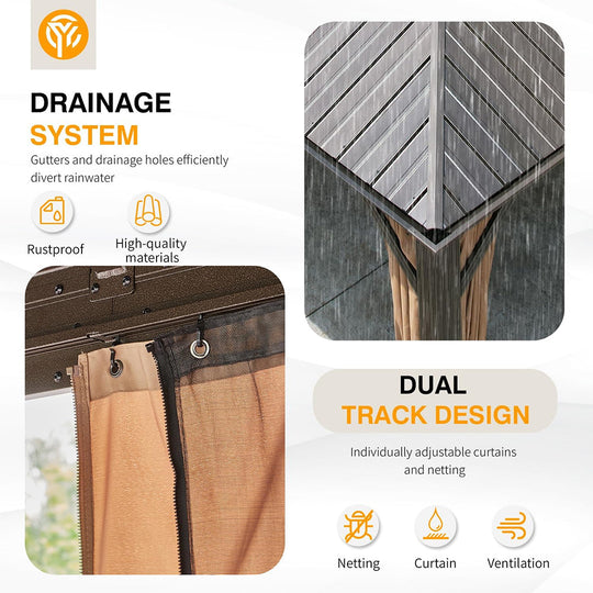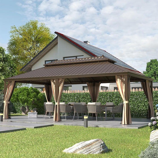 [14X24FT] Alora Heavy-Duty Aluminum Galvanized Steel Double Roof Hardtop Gazebo With Netting And Curtains (SAK41853)