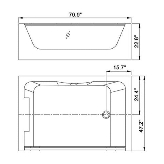 Alora Premium Freestanding Rectangular Hydromassage Soaking Spa Bathtub, 71" (SAK28534)