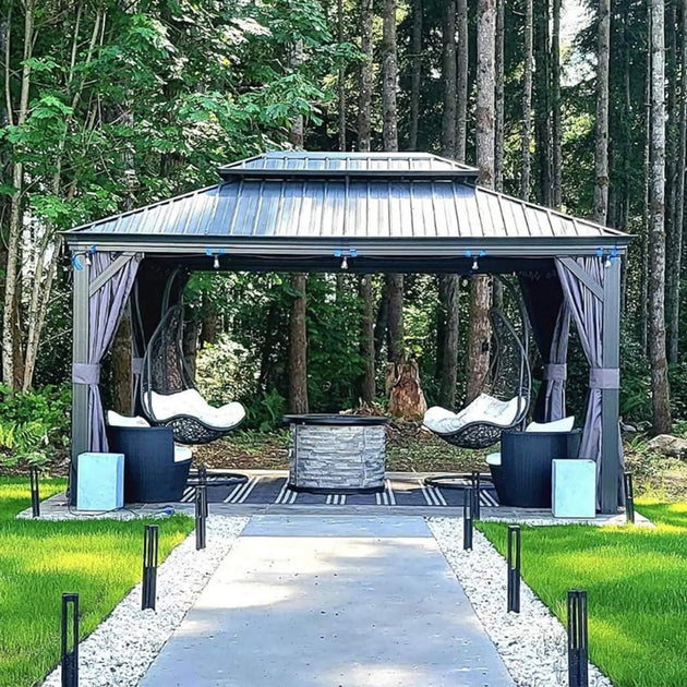 [12X14FT] Alora Hardtop All-Weather Outdoor Gazebo With Galvanized Steel Roof (SAK83261)