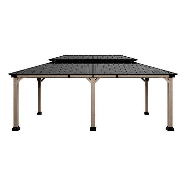 [12X20FT] Alora Heavy-Duty Backyard Cedar Wood Steel Hardtop Double Roof Gazebo Canopy (95726813)
