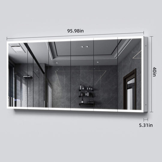 [96X40-Inch] Nuvia Wall-Mounted Medicine Cabinet Mirror With Anti-Fog And Tri-Color LED Lights (SAK82340)