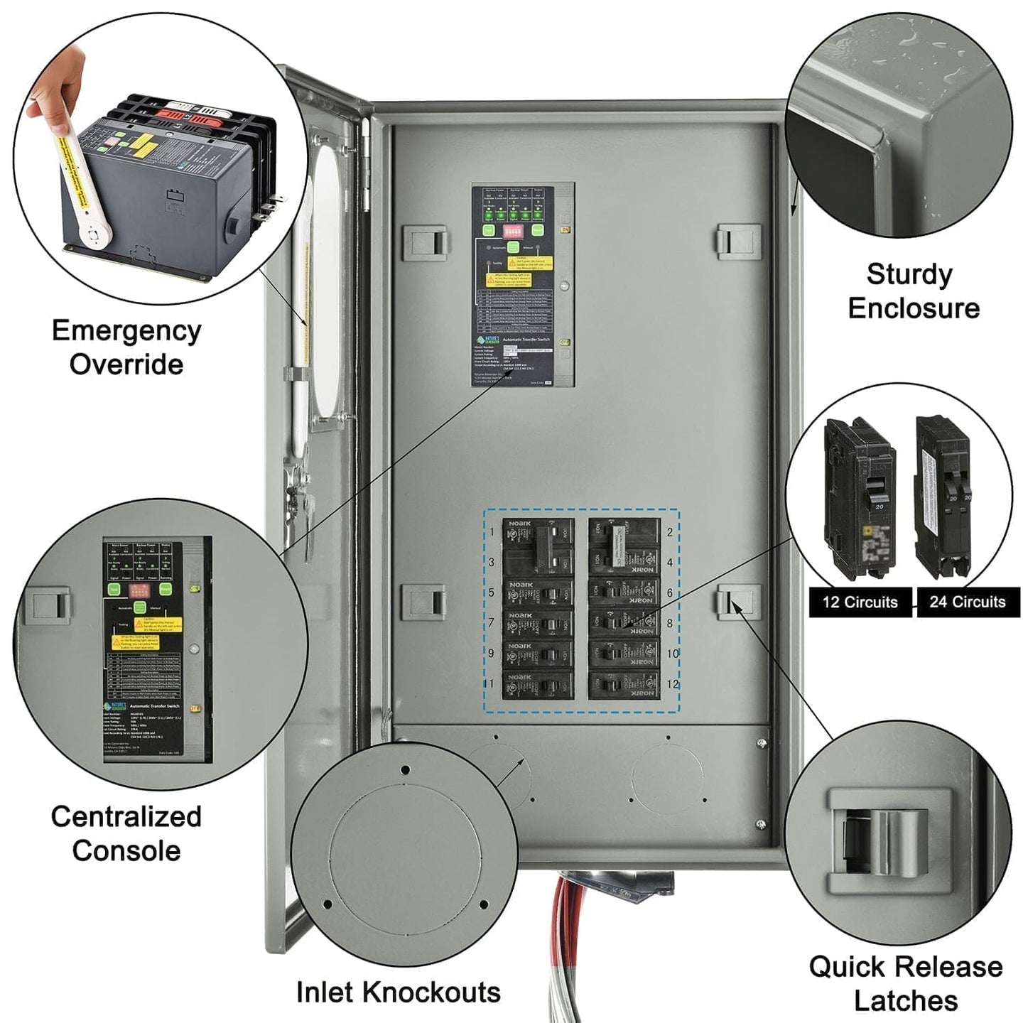 Circuit Compatibility: Handles up to 24 circuits, providing comprehensive coverage for home power needs.