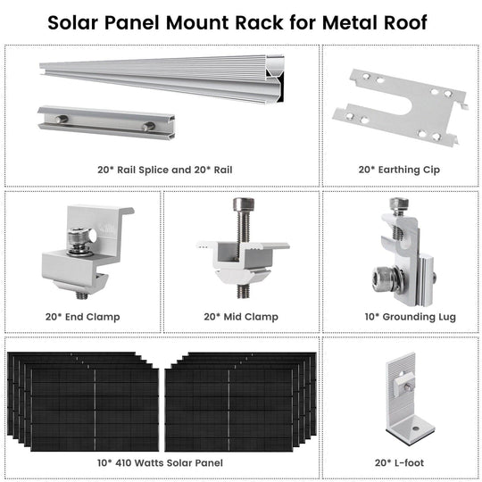 410 Watt Monocrystalline Solar Panel (10 Pack) With Solar Panel Mount Rack