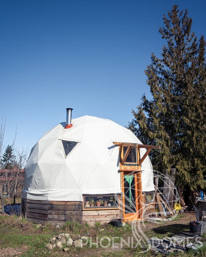 Condensation: Because the dome’s cover creates a sealed space, managing indoor moisture is essential to avoid mold or mildew. For domes with kitchens or bathrooms, we recommend installing an exhaust fan. Solar fans are also excellent for year-round airflow and temperature control. A dehumidifier is especially useful during colder months, and anti-mold sprays can be applied around the bottom edges of the liner, particularly behind furniture or appliances.