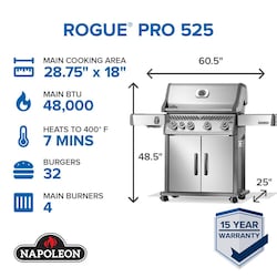 Napoleon | Rogue PRO 525 4-Burner Propane Grill w/ Side Burner | RP525SIBPSS-2