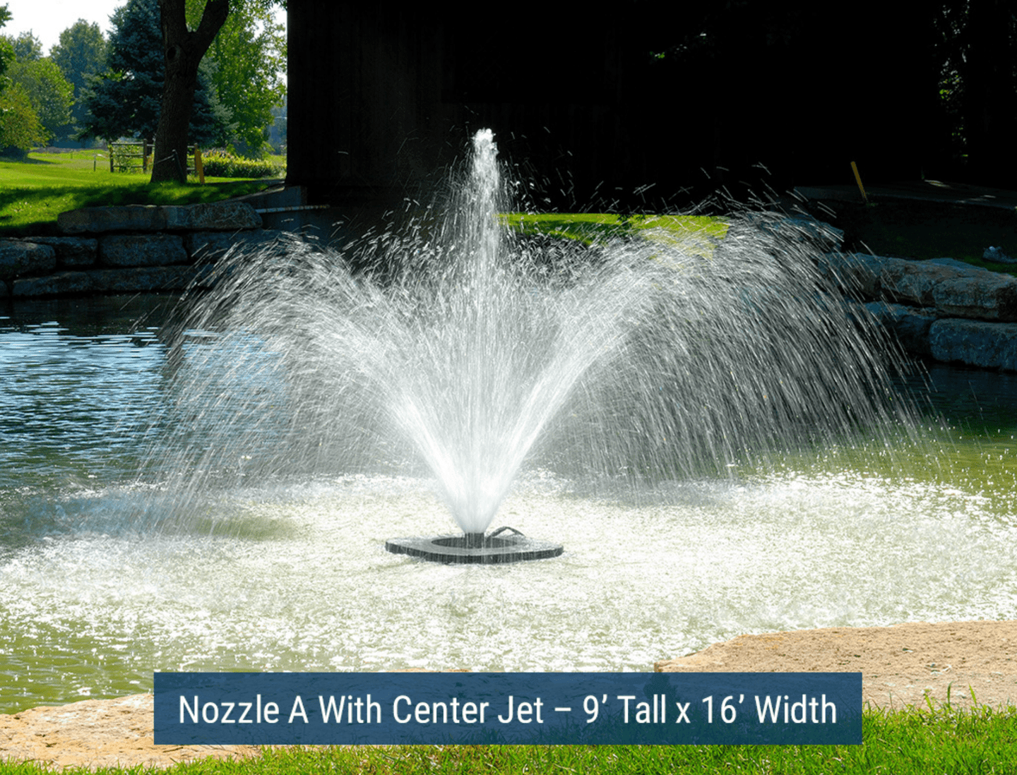 - A: This is a loaded question, and the most common one that we get. Our first question would be: is the goal aeration, aesthetics or both? If the goal is aeration or both, we recommend checking out one of our Aerating Fountains. These have a much higher flow rate than our aesthetic fountains and will circulate a larger volume of water. If the goal is aesthetics, there are many different options to discuss. A lot of this will be largely up to you, and what you want it to look like. The biggest things you want to determine are first, that your pond meets the minimum depth requirements and second that the display size isn’t too large for it. We have display dimensions on all fountain product pages.