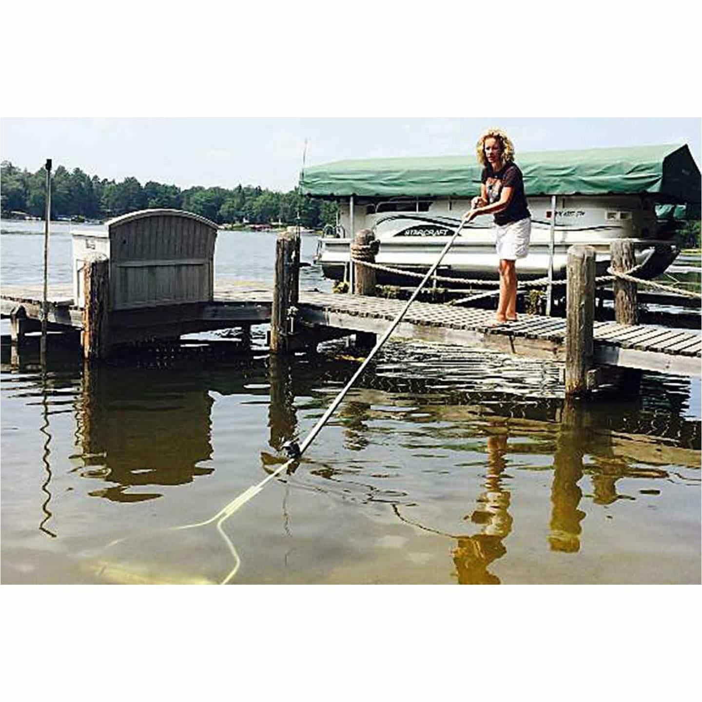 The Beachroller is an amazingly simple tool that eliminates lake weeds at the roots. It's the only manual lake weed-cutting device that gets to the problem: the lake bottom. The Beachroller cuts and pulls weeds out by the roots while simultaneously loosening muck and silt on the bottom. The 2-foot-wide roller is equipped with six custom blades connected to the 15-foot handle, so you can cover a large area in a short amount of time. Cut weeds don't stick to the roller, so there's no need to stop and clean off nasty stuff.