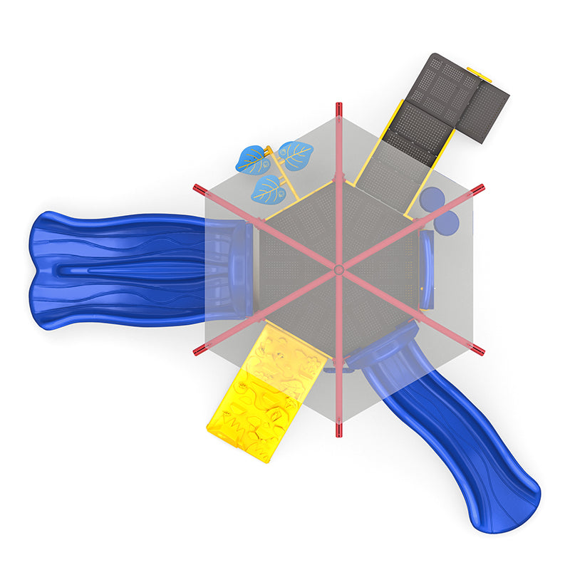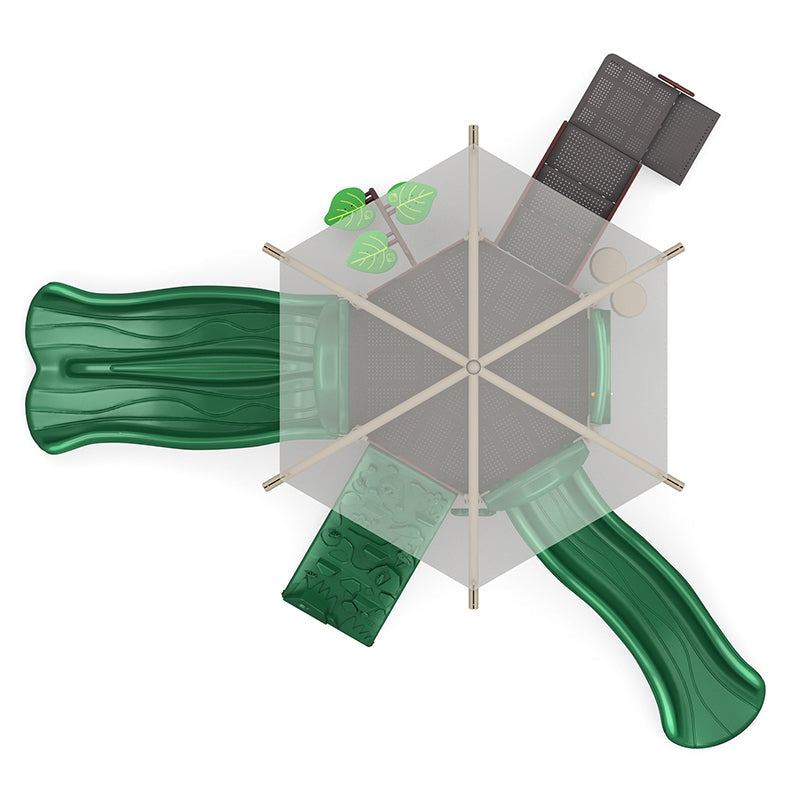 Engaging Elements: Double & single slides, rock and leaf climbers, Rain Wheel, Bongo Drums, and more