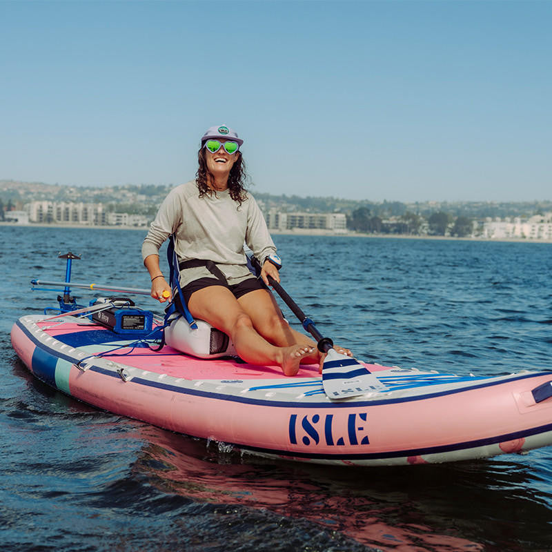 The ISLE/Bixpy K-1 Outboard Kit - Power Pole Adapter + Steering Bundle includes the mounting adapter and steering needed to motorize a ISLE 11'6 Switch Pro, ISLE Flywater, and all ISLE Megalodon 3 models. This motor kit installs in just minutes on ISLE boards and boats featuring the motor mount system. This system allows the motor to be completely raised out of the water to avoid damage and for when the motor is not in use. Includes steering capability with 270 degrees of rotational trim for a relaxing experience without the need to use a paddle for steering.