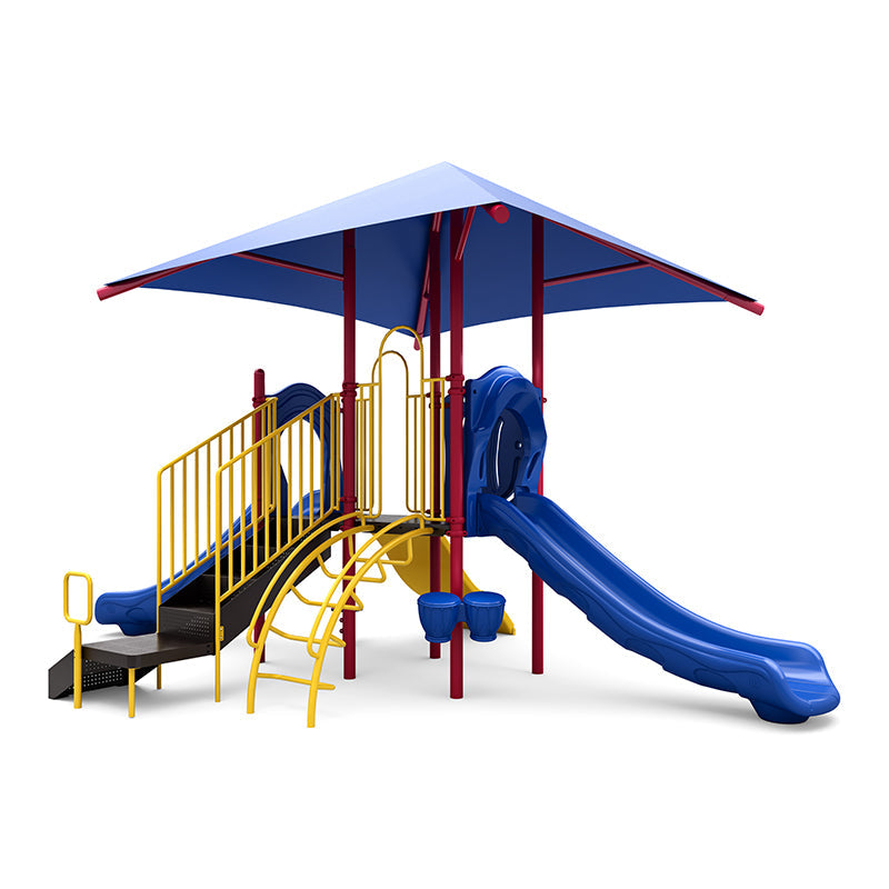 The Wisdom Northern Place Playground Structure offers big fun in a compact footprint. Designed for children ages 2–12, it combines climbing, sliding, and sensory play in a safe, accessible, and space-efficient design—perfect for schools, daycares, and parks.
