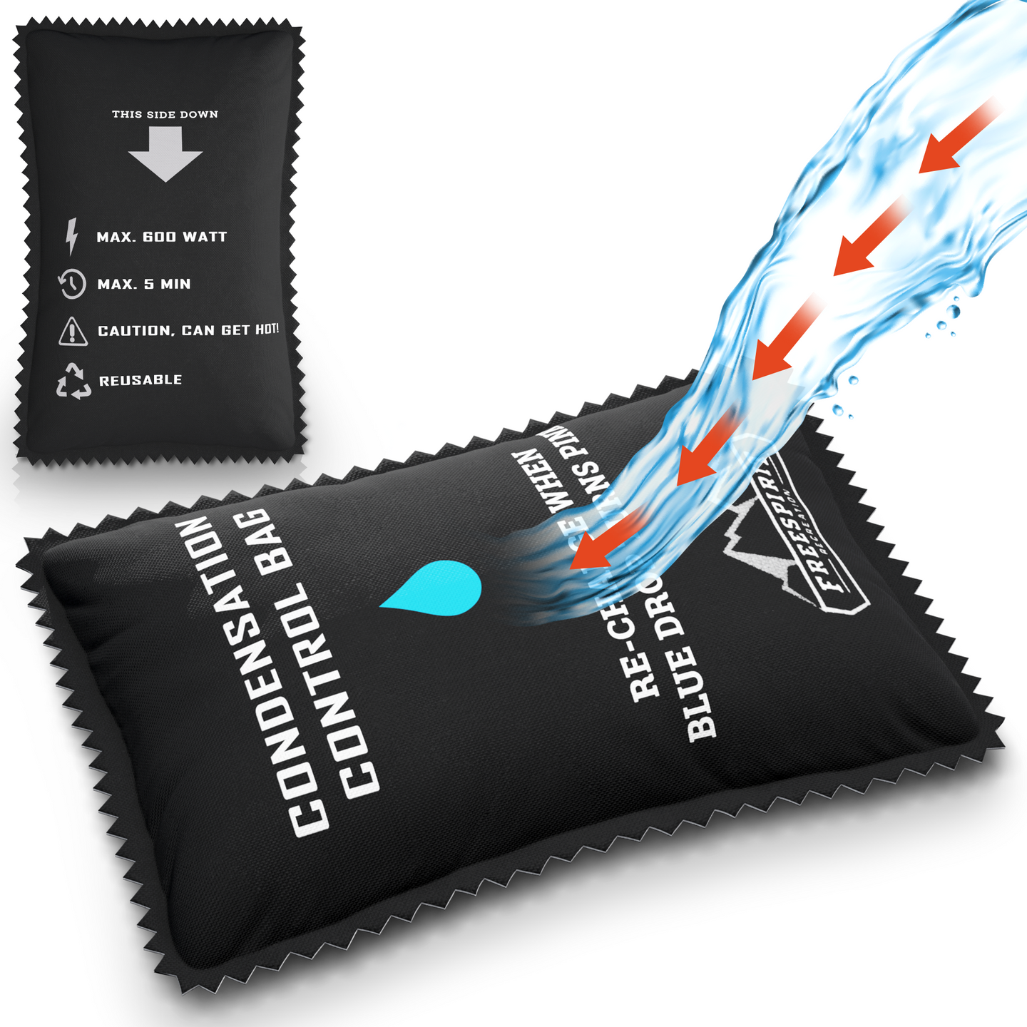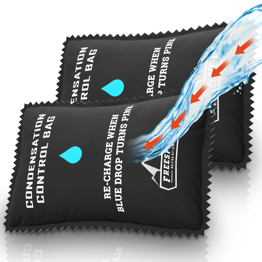 Designed to efficiently combat excess condensation, these bags feature a distinctive raindrop logo that gradually changes from blue to pink as moisture is absorbed. When the indicator turns pink, it's time for a simple microwave treatment to rejuvenate the bag, making it ready for reuse. This eco-friendly and versatile product not only protects your belongings from moisture damage but also helps eliminate musty odors, creating a fresher and more inviting atmosphere inside your rooftop tent.