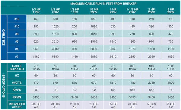 | 1/2 HP 115V | 10 | 670 |