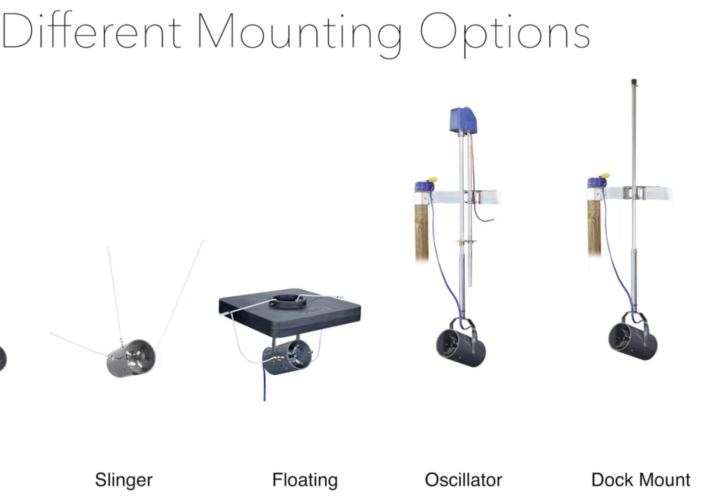 Slinger De-Icer: Can be used to suspend from a boat, pilings or dock using the included nylon ropes to fasten. This option, like the Floating is suitable for varying water levels due to its ability to adjust accordingly.