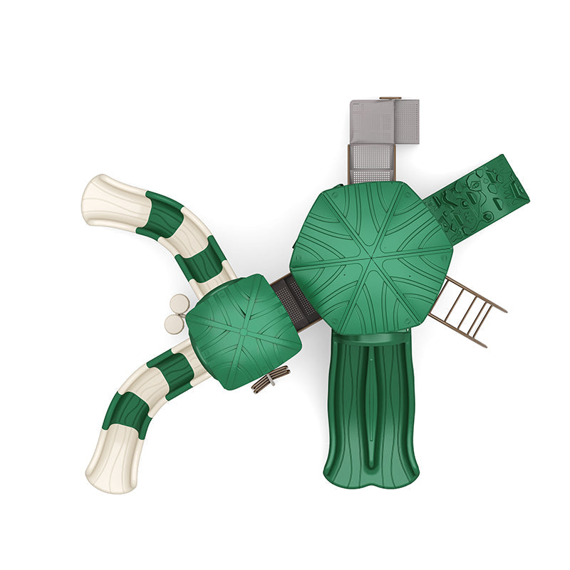 Exciting Play Elements: Includes dual-height rock climbers, a sectional slide, and a double slide.