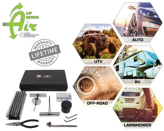 No reviewsUp Down Air 53-Piece Tire Plug Repair Kit — Off-Road & RV Emergency Repair Overview Compact, durable tire repair kit designed to fix punctures without removing the wheel. Built for trucks, Jeeps, off-road vehicles, RVs and...Regular price $34.99Regular price $34.99