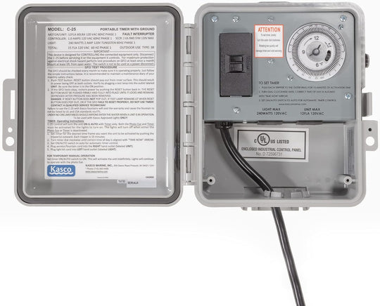 120V, Single Phase Plug & Go 120V Hook Up 15 Amp Single Pole Class A Human Rated GFCI 24 Hour Mechanical Timer with Two Each ON and OFF Trippers Photo Cell for Optional Light Kit UV...Sale price $351.00Regular price $450.00Sale price $351.00Regular price $450.00 -