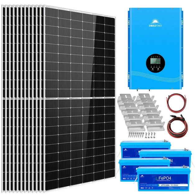 SUNGOLD POWER | Complete Off Grid Solar Kit 12000W 48V 120V/240V Output 10.24KWH Lithium Battery 5400 Watt Solar Panel SGK-12MAX