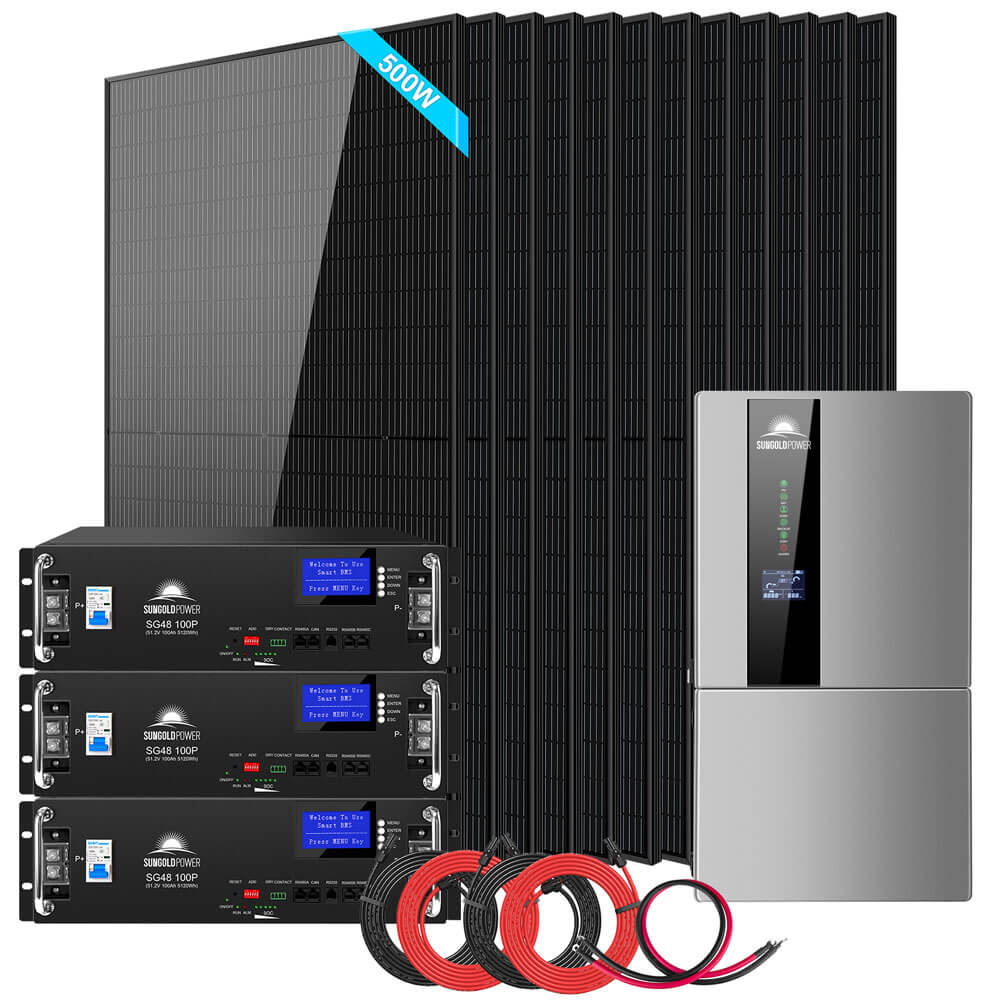 SUNGOLDPOWER | Hybrid Solar Kit 7.6KW 48V Split Phase 15.36KWH/30.72KWH Lithium Battery 415/ 500 Watt Solar Panel SGH-7.6N3E/ SGH-7.6DN6E