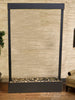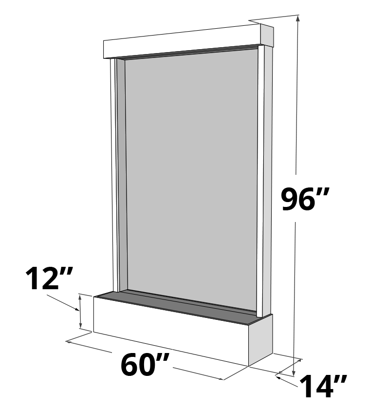The Adagio Grandeur River is a large, freestanding indoor fountain designed to sit flush against a wall and create a dramatic focal point. At 96" tall and 60" wide, it features a translucent glass or FeatherStone surface, a powder-coated steel or copper frame, integrated lighting, and a quiet recirculating pump. It’s built for high-end residential and commercial interiors and can be customized with logos or custom engraving.