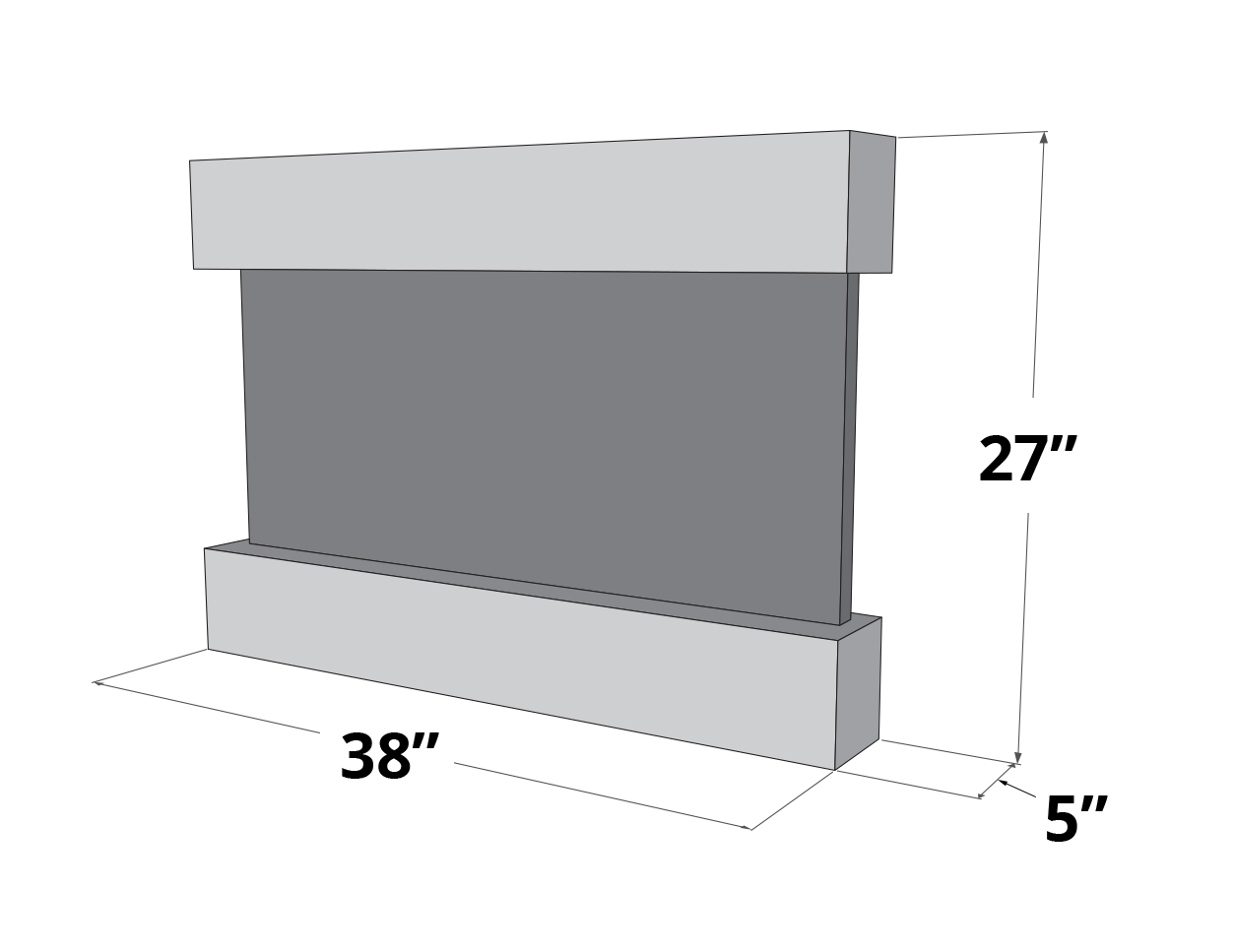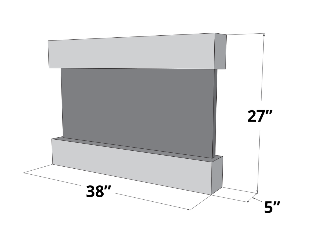 The Reflection Creek is a compact, horizontal wall fountain designed for homes and offices. At 27" high, 38" wide, and 5" deep, it delivers the visual and acoustic benefits of flowing water while taking up minimal space. Hand-assembled in the USA, the unit is available with a range of natural and lightweight surface options and multiple trim finishes.